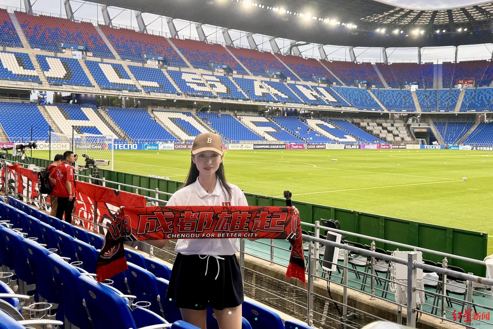 ▲白芸在韩国蔚山文殊足球竞技场,观看成都蓉城的首场亚冠精英联赛正赛 图据受访者